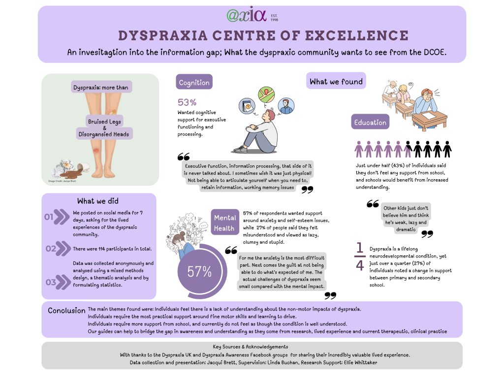 Dyspraxia, often referred to as Developmental Coordination Disorder, is underrepresented within neurodiversity research, understanding and support. We know that minority groups are missed, and standardised tests don’t differentiate between neurodivergent motor coordination challenges or appreciate the complexity of this lifelong condition.