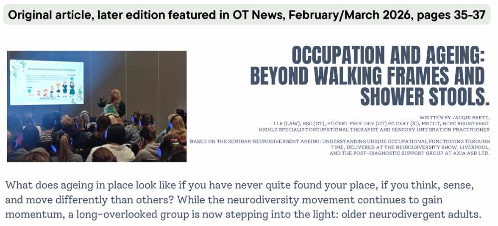 Original article, later edition featured in RCOT, OT News, February/March edition 2026, pages 35-37